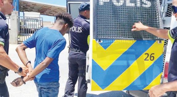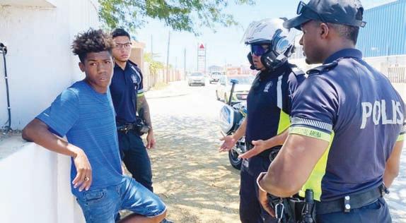 haya nan descripcion. Na un distancia polis a mira un di e sospechosonan ta wak camufladamente den nan direccion, mesora nan a bay su tras net e sospechoso a cunsa cana mas lihe pero toch a logra par'e. E hoben a desmenti pero testigonan a afirma cu ta e mes. Na diferente ocasion polis a puntra pa e placa falso pero ela bisa cu e no tin'e. Na un dado momento cu tactica polis a logra saca e placa for di dje
