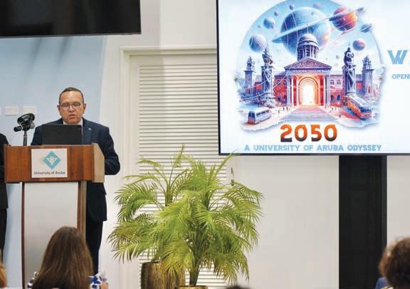 Thode a duna un discurso interesante caminda el a hiba e presentenan den un biahe pa aña 2050; “A UNIVERSITY OF ARUBA ODYSSEY”, mustrando unda Universidad di Aruba lo mester ta na e momento ey como un partner strategico pa henter comunidad, atendiendo y investigando retonan cu e comunidad lo ta atravesando.