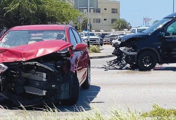 Diaranson merdia a drenta informe di un accidente cu hende herida banda di Palm Beach Plaza, mesora a dirigi tanto polis como ambulans na e sitio. Na yegada di e patruya a bin compronde cu aki ta trata di un accidente semifrontal unda un chauffeur turista den un Hyundai Accent di huur biniendo for di e rotonde Palm Beach a bay "take chance" y bira na man robes dilanti un van biniendo for di
