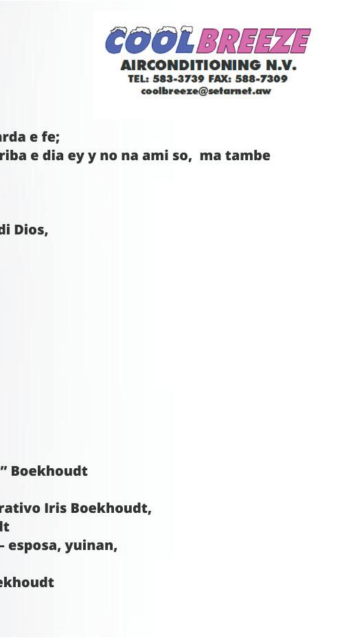 Oracion: Danki Señor pa mantene mi generoso pa nunca mi perde mi confiansa den Bo. Señor aumenta mi fe. Amen.