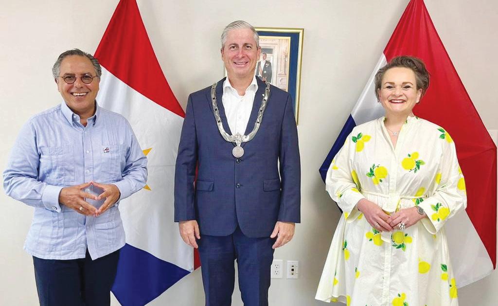 Embahador di Republica Dominicana a bishita Minister Thijsen