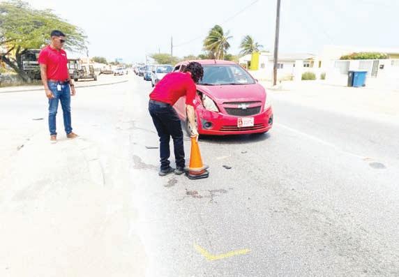 Diaranson mainta a drenta informe di un accidente na Indianenweg, mesora a dirigi un patruya na e sitio. Na yegada di e patruya a bin compronde cu un Toyota Yaris yegando e crusada cu Dominicanessenstraat a para pero e van su tras no a regula su velocidad ni a mantene distancia a bay dal tras di e Yaris y mand’e dilanti meymey di e crusada. Afortunadamente no tabata tin ningun auto ta bini cu lo a bin dal riba dje ni ningun hende a resulta herida