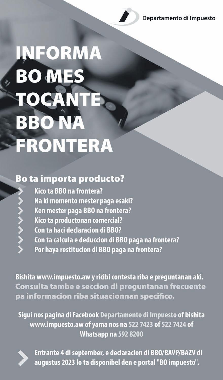 2 E contribuyentenan por conta cu Departamento di Impuesto no ta para keto y ta keda mehora y digitalisa su procesonan pa asina ta mucho mas eficiente y eficaz. Gerencia di Departamento di Impuesto 24 di augustus 2023