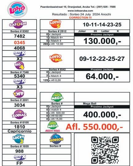 Louis Haayen a gana e premio maximo cual ta un suma di AWG 15,000, Gerick Croes ta e ganador di AWG 10,000.-, y Richard Kelly, William Erasmus, Jessica Teixieira, Dwayne Marchena y Maikel Martis ta e feliz ganadornan di AWG 1,000.-.