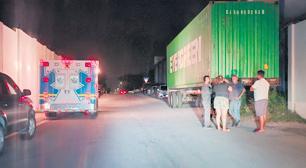 E homber cu su cabes na partinan punta di e container y ta cay, kedando na sanger y e momento ey lo a bay for di tino.