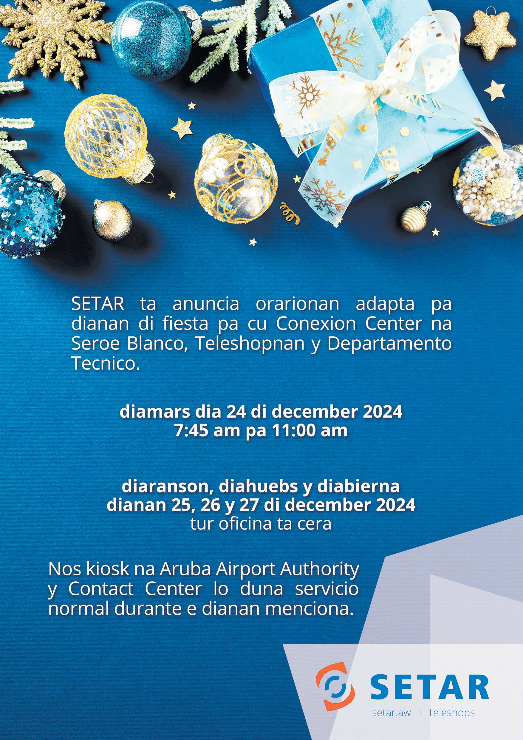 bienestar di nos tur. Tur hende por contribui den e bida di otro pa haci di Aruba un isla mas bunita, y esaki ta e regalo di Pasco cu nos por duna na otronan. Danki pa laga mi drenta den boso hogar riba bispo di Pasco unda cu hopi di boso ta reuni den famia y amistadnan. Hunto cu mi esposa Hanneke y mi yiunan, mi ta desea boso tur un Feliz Pasco y un Aña Nobo yena di bendicion.
