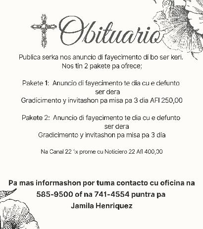 Casa, yiu, nietonan y ruman ta gradici tur esnan cu di un of otro manera a duna muestra di cariño y sosten durante enfermedad, fayecimento y entiero di nos difunto stima: