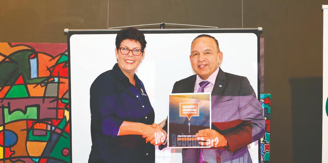 En conexion cu dia Nacional contra Traficacion di Hende, Minister Endy Croes hunto cu Prome Minister Evelyn Wever - Croes a presencia lansamento di e pakete educacional tocante Traficacion y Contrabanda di Hende, “Lespakket Mensensmokkel Mensenhandel”. E ta un pakete special pa studiantenan di scol secundario entre 12 pa 18 aña cu ta duna informacion tocante traficacion y contrabanda di hende. Ta importante pa hobennan ta alerta pa señalnan di posibel traficacion y/of contrabanda di hende sea pa nan mes of esnan cerca di nan tanto na Aruba como den exterior. E “lespakket” ta un prome paso den crea mas conscientisacion cerca nos hoben studiantenan. Haciendo uzo di e