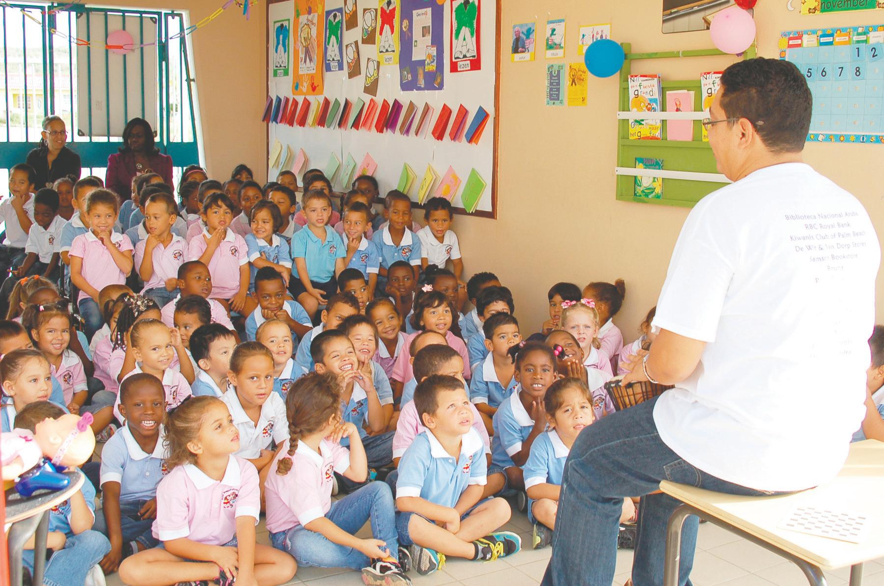 Sr. Gino Vrolijk, docente y autor di buki pa mucha ta bay duna tur cu e tin pa e festival aki.