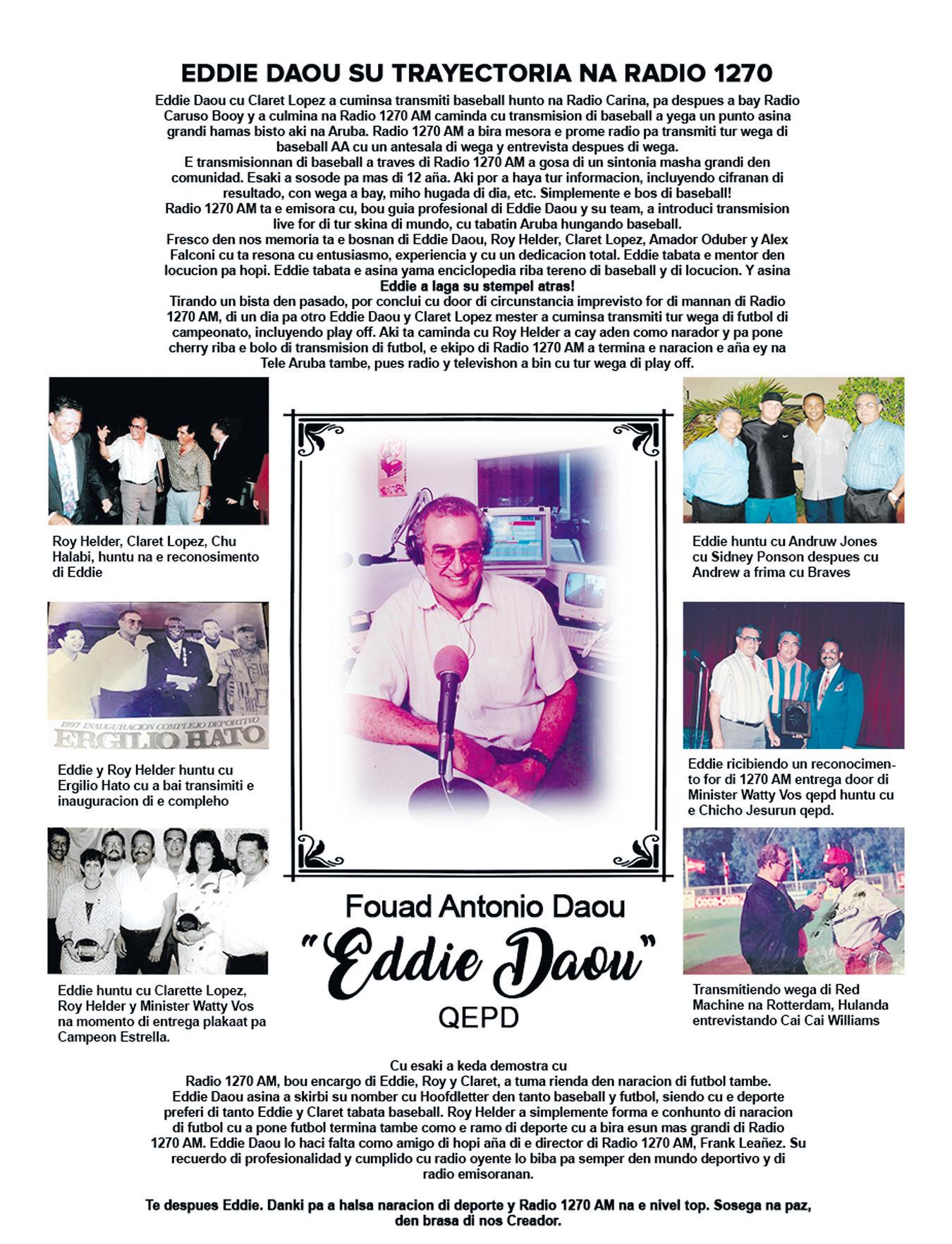 Ta invita pa e acto di entiero cu lo tuma lugar diasabra 9 di maart 2024 na Aurora Funeral Home di 2:00 pa 4:00 pm, despues lo sali pa Santana Catolico Pastoor Kraanwinkel na Paradera.