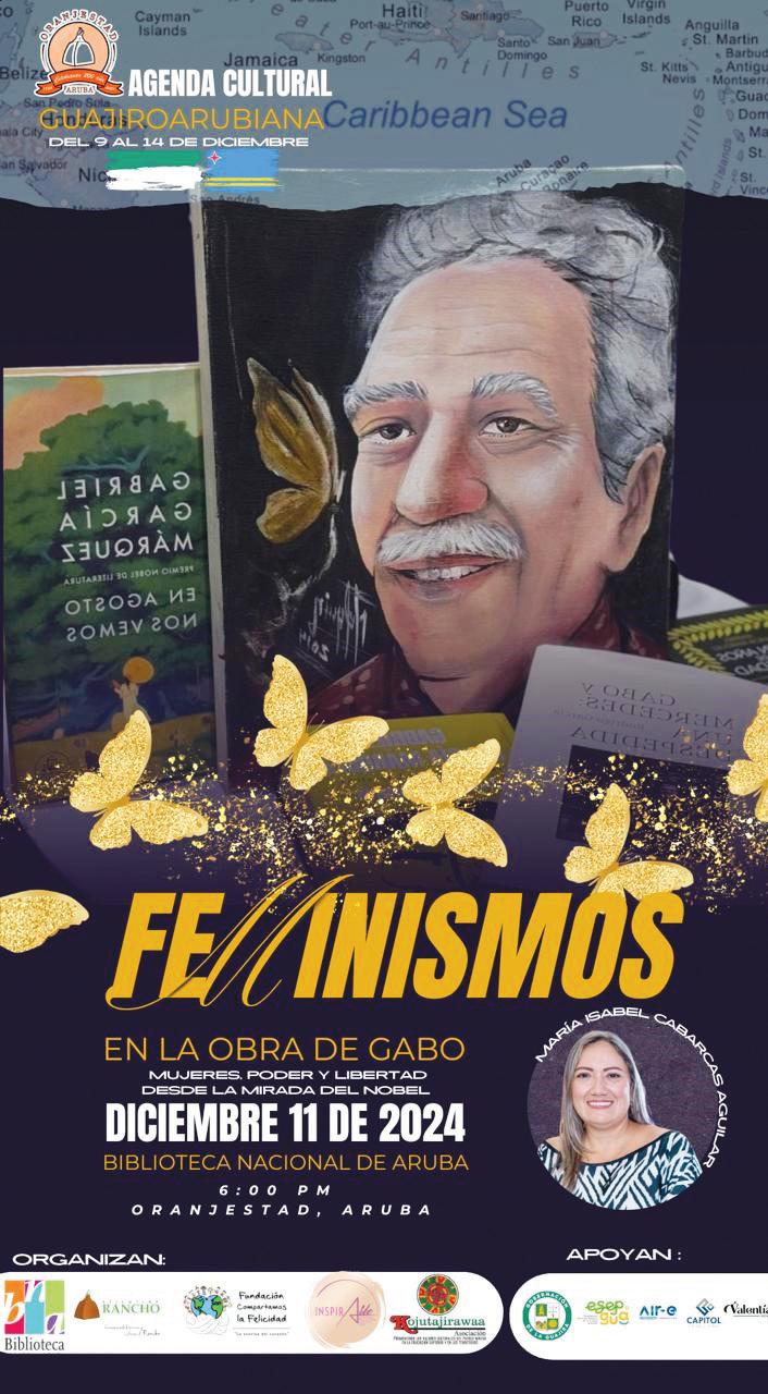 E prome conferencia lo tuma luga na Biblioteca Nacional di Aruba diaranson dia 11 di december, pa 6:00 or di atardi, bou di e titulo Feminismos en la obra de Gabo: Mujeres, Poder y Libertad desde la mirada del Nobel.