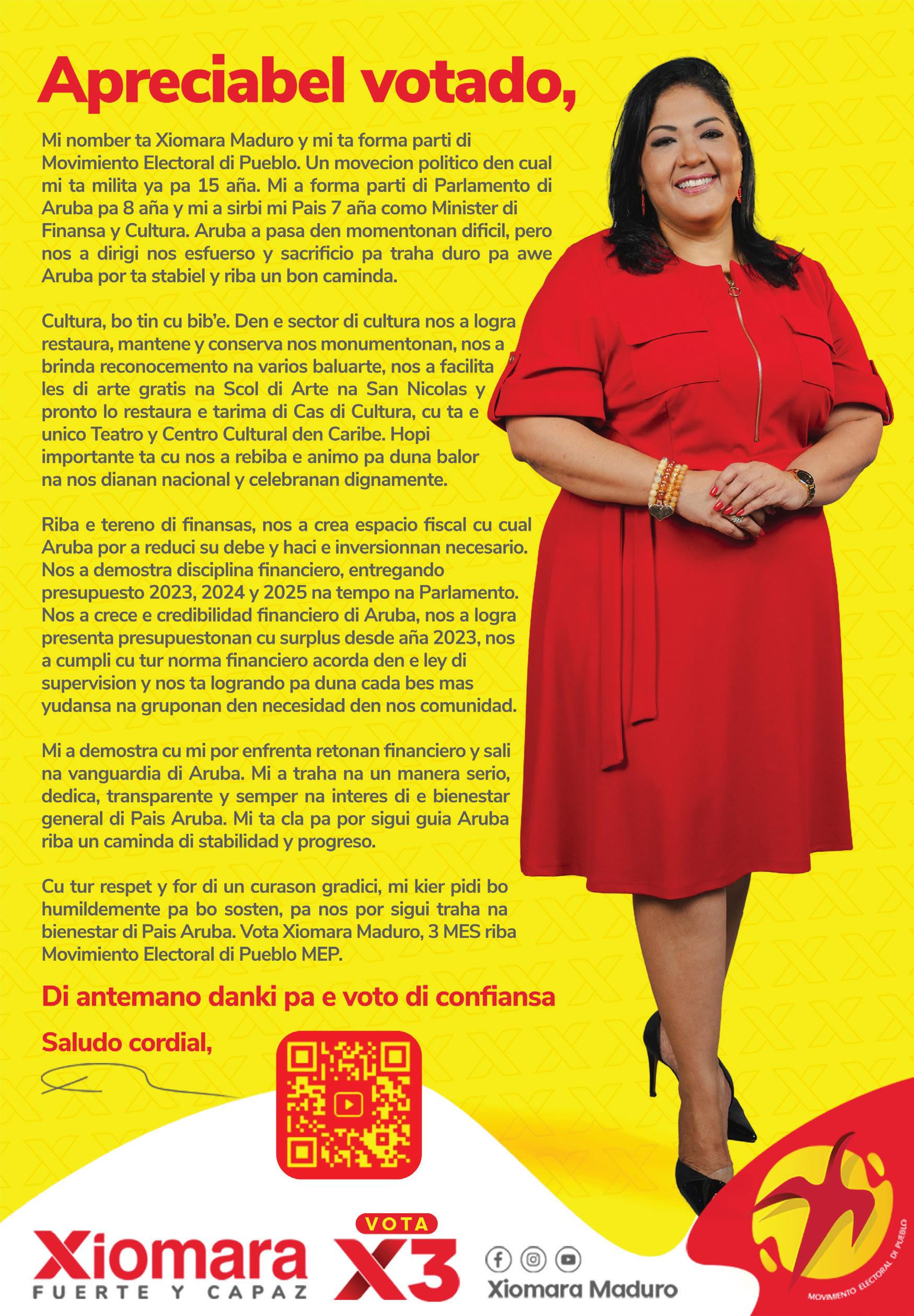 - Den cuadro di dia di eleccion nacional, 6 di december, dia cu ta bay eherce e derecho di voto 2024, DNM lo ta cera mita dia desde 11:30 am. Nos oficina na B v/d Veen Zeppenfeldtstraat #7 situa na San Nicolas lo ta cera despues di merdia.