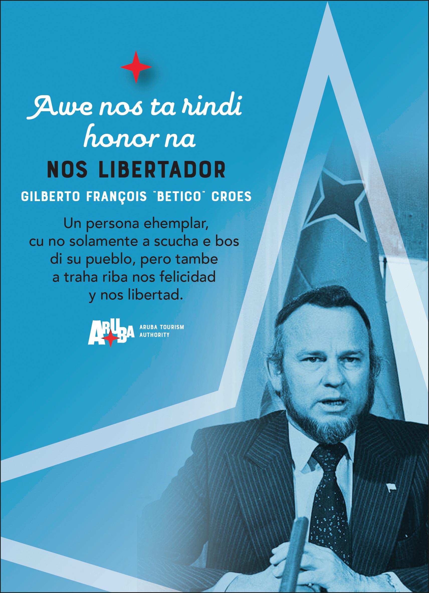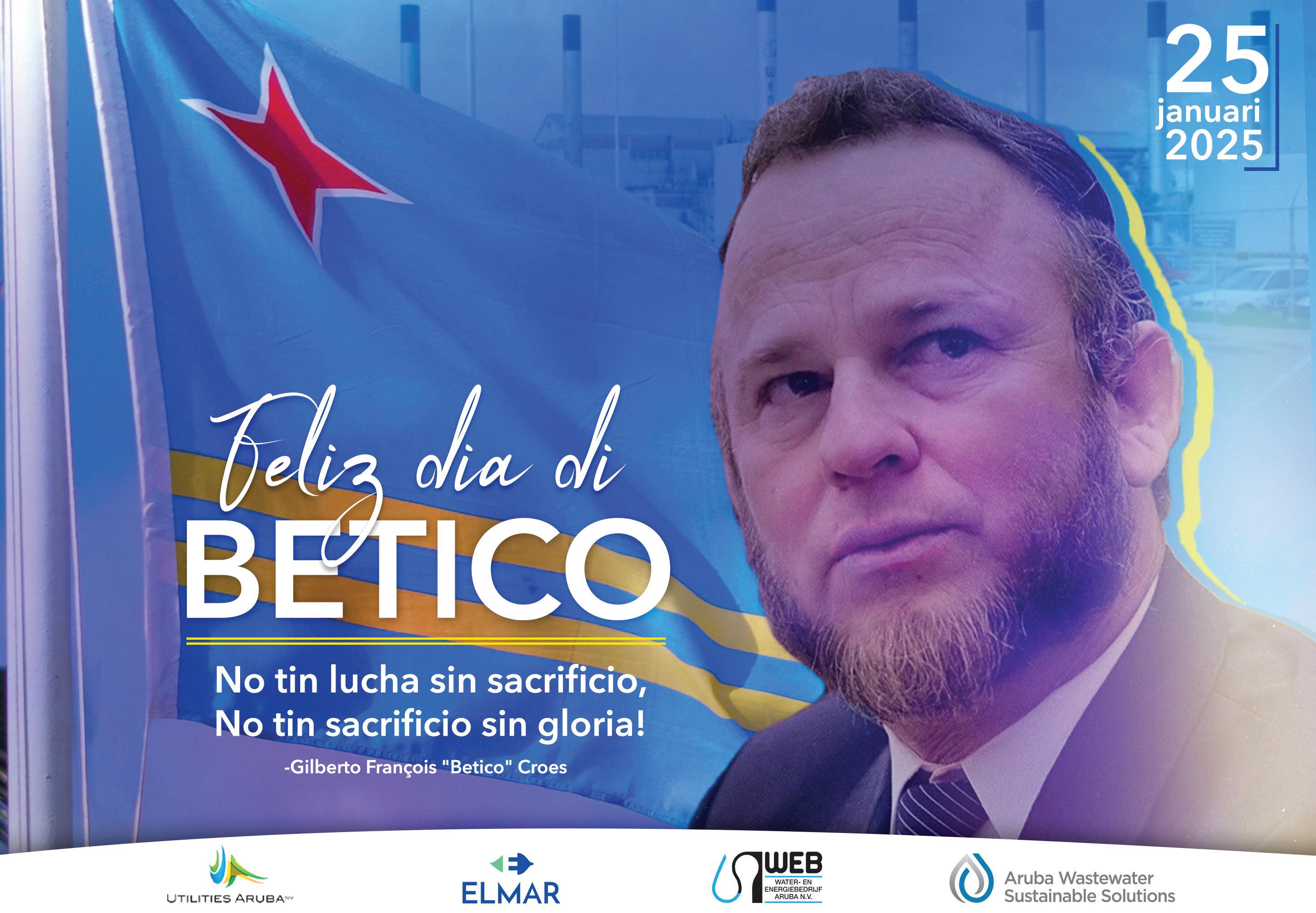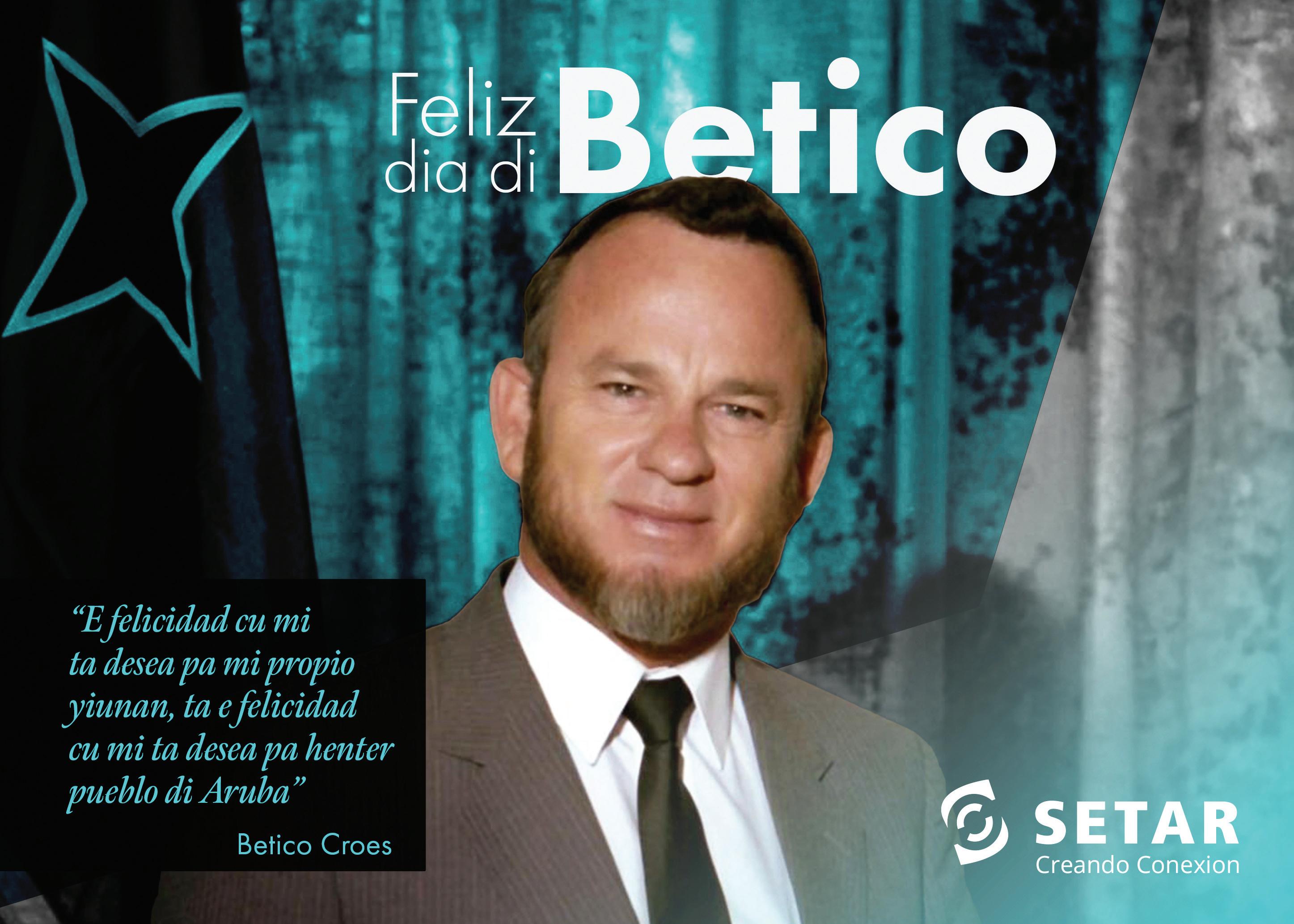 Ademas di determina e unico strategia exitoso pa reconocemento di nos autodeterminacion, Betico ta e unico cu a pone nos kere den nos identidad como pueblo cu merece di ta soberano, fortaleciendo nos cu e simbolonan necesario, manera nos Papiamento. E lucha di Betico a keda intimamente refleha den nos bandera. Un bandera cu ta representa un isla dorna cu palma y rondona di santo blanco situa den lama grandi, unda solo semper ta briya. Pero, e mensahe di nos bandera ta bay mas profundo. Riba e tela blauw tin un strea cora cu blanco, di cuater punta, den skina ariba na man links. E strea ta bisa nos cu Aruba tin un posicion di honor memey di e nacionnan cu ta rondona nos. E strea cora cu blanco tambe ta simbolisa e caracter amabel di nos pueblo, cu tin