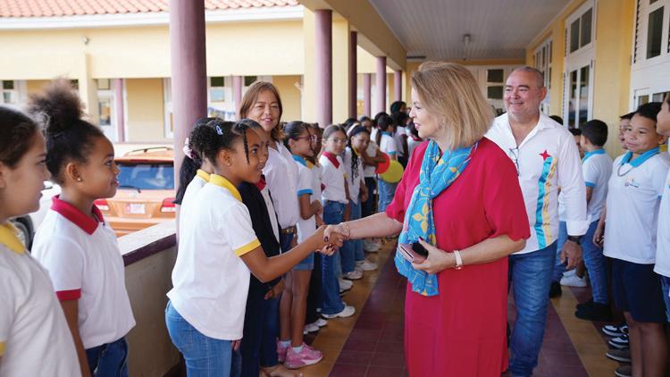 Riba e mainta aki, Prome Minister a bishita St. Paulus School na San Nicolas. Den un ambiente alegre y festivo, e mandatario a wordo ricibi pa e Cabesante di scol, señor Randy Arends acompaña pa e alumnonan formando un coro cantando Himno di Aruba mientras a hisa e bandera. Un momento hopi special pa e mandatario ken yen di emocion a expresa su alegria y gratitud pa e echo special aki.