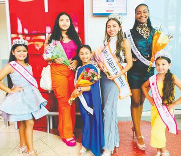 E comicion completo di Cas Princesa Aruba compaña pa dos di nan reinanan tawata presente na airport pa ricibi Miss Ambar Mundial 2023 Jayleen Croes, diadumingo ultimo.