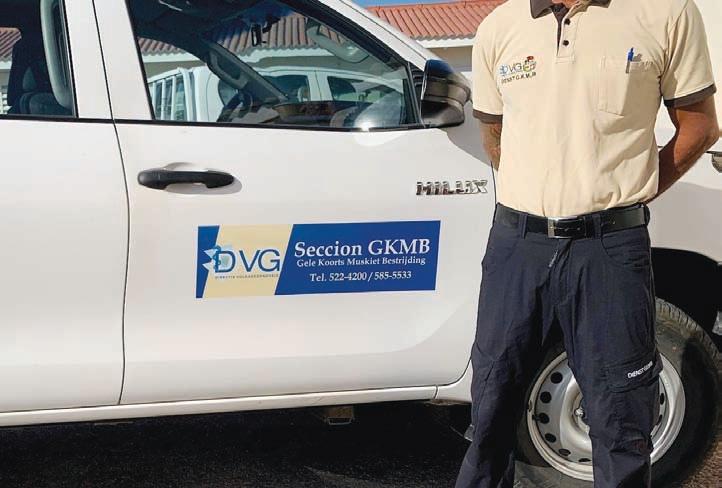cu ne. E orario cu GKMB ta inspecciona cas ta di dialuna pa diabierna entre 8:00 cu 11:00 di mainta y atardi entre 1:30 cu 3:30. Ora di inspecciona cas den bario mayoria biaha lo por observa 3 of 4 empleado moviendo hunto den un pick up color blanco cu emblema di DVG y nomber di e seccion Gele Koorts Muskiet Bestrijding (GKMB) riba su porta.