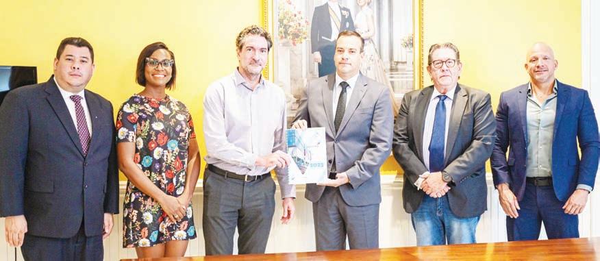 - Minister di Asuntonan Economico, Comunicacion y Desaroyo Sostenibel, mr. Geoffrey Wever, hunto cu director di FreeZone Aruba N.V. drs. Greg Peterson y Presidente di