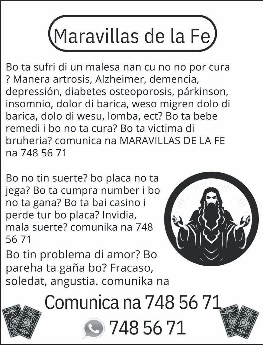 bennan pa por sigui cu e bunita trabao aki, ya cu casi nos tur ta hende grandi caba. Nos ta invita tur hende pa por asisti na nos oracion o misa, tur diaranson anochi 7’or. Y nos Sitio ta habri tur dia di 7.30 am pa 7.00 pm.