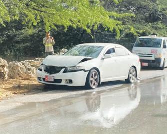 Diaranson mainta a drenta informe di un accidente na Sero Blanco, mesora a dirigi un patruya na e sitio. Na yegada di e patruya a bin compronde cu un auto a pasa dal un Honda Fit staciona y e auto a sigui core bay. Polis a keda di check