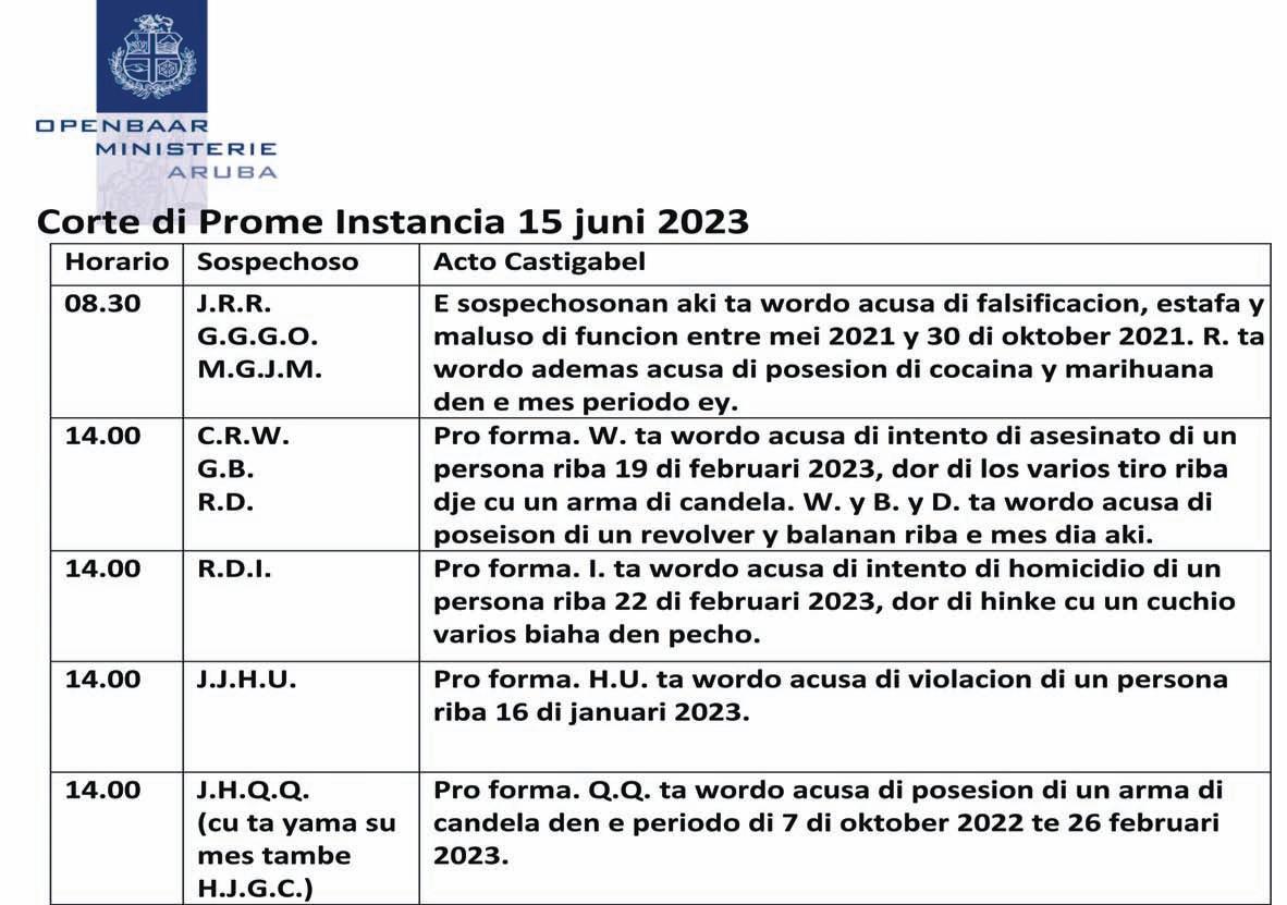 Pa awor, SOLO DE PUEBLO a compronde cu awor e caso lo bay sigui lora. Asina ta ban keda pendiente pe investigacion.