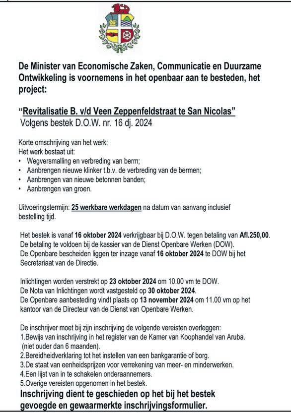 E proyecto di Revitalisacion di Oranjestad actualmente ta continuando den area di Lagoen, caminda lo amplia mas parkeo y tambe drecha e estetica di e area pa sostene e establecimentonan comercial di e area.