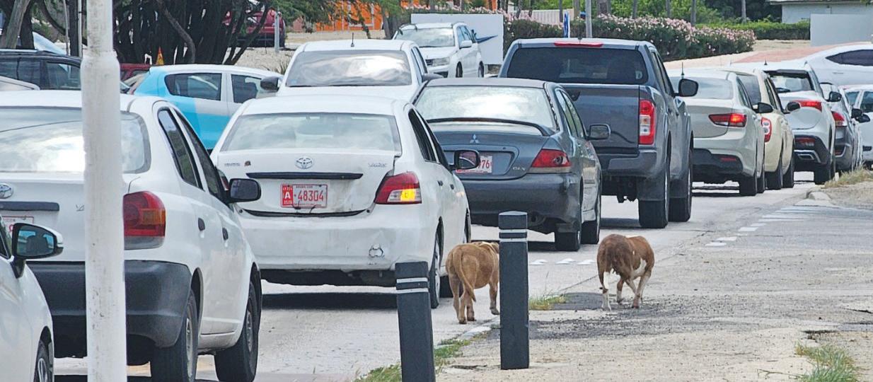 cu 2 pitbull adulto tawata ey dilanti, poniendo esnan cu mester busca yiu di scol y tambe muchanan cu a caba di scol den un spot no mucho agradabel.