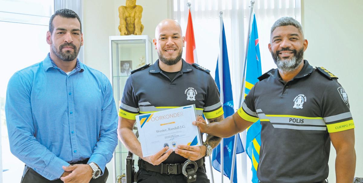 “Esaki ta e esencia di nos trabou, mi ta hopi orguyoso na mi colega Wester pa su balentia, empeño y a riesgo su bida pa salba otro.” Tabata palabranan di altocomisario Arnhem. Arnhem a reconoce Wester cu un “Oorkonde” como tambe un regalo chikito pa su servicio brinda. Di e forma aki ta sigui elogia nos agentenan policial cu ta bay e extra mile den nan trabou di Polis.