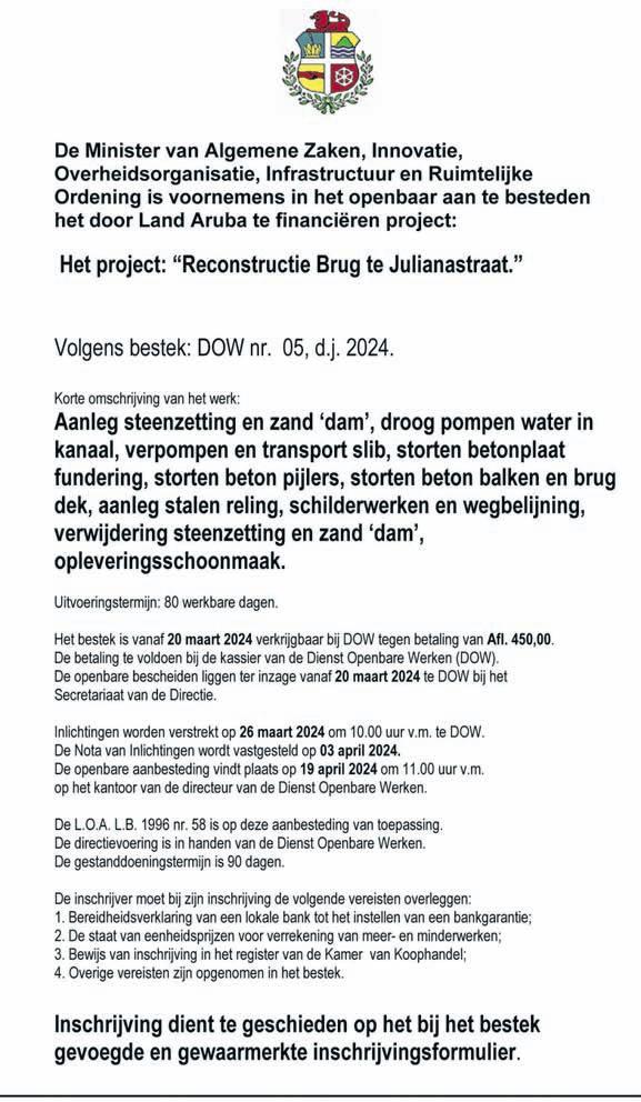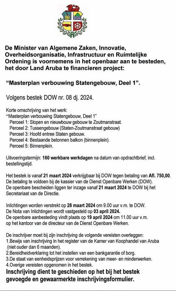 Segun Minister di husticia a informa, diaranson mainta hunto cu Gobernador di Aruba, sr. Alfonso Boekhoudt, nan a haya un recorido amplio