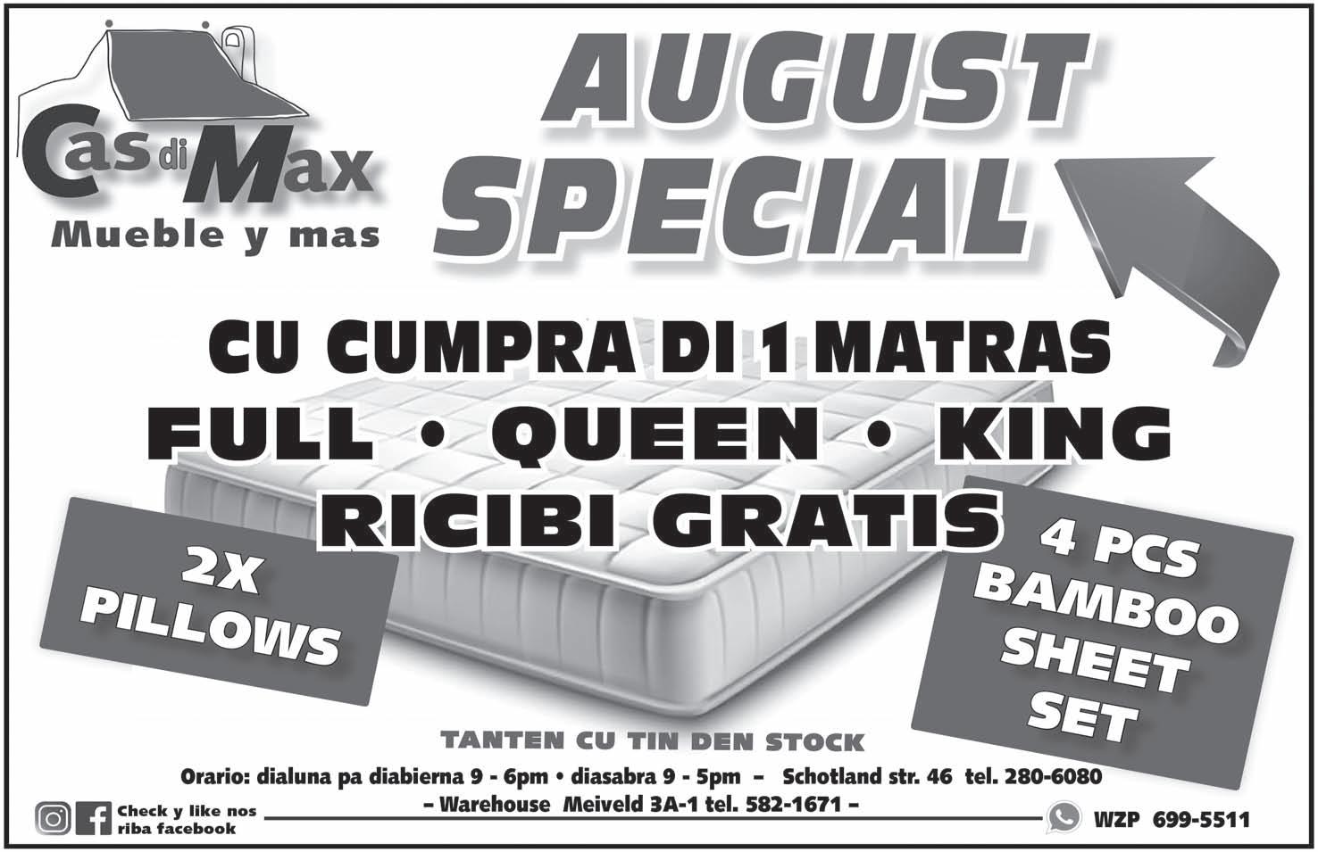 Inmaculada Concepcion, diabierna 25 di augustus 2023 di 2’or pa 4’or di atardi. Despues lo sali pa Santana Catolico na Sta Cruz. Nos disculpa si den nos tristeza nos por a lubida un of mas famia.