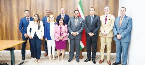 Minister di Asuntonan Economico, Comunicacion y Desaroyo Sostenibel, Geoffrey Wever y delegacion di Aruba, consistiendo di Directora di DEZHI Sra. Dijkhoff-Pita, Presidente di KVK Sr. Kemmerling y Director di ATIA Sr. Henriquez, a reuni diamars merdia cu Presidente di Surinam Sr. Chandrikapersad Santokhi compaña cu Minister di Economia, Empresaria y Innovacion di Surinam, Sra. Rishma Kuldipsingh na Paramaribo, Surinam. Durante e reunion e delegacion di Aruba a wordo compana pa embahador Reino Hulandes na Surinam Sr. Walter Oostelbos.