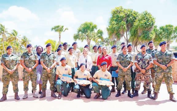 Minister Evelyn WeverCroes tawatin e honor di haci entrega di certificado na e cursistanan di SVT cu a termina e prome parti di e entrenamento. Esaki ta un entrenamento hopi pisa unda e hobennan ta haya formacion den disciplina, comunicacion, teamwork y tambe con pa traha riba nan metanan personal.