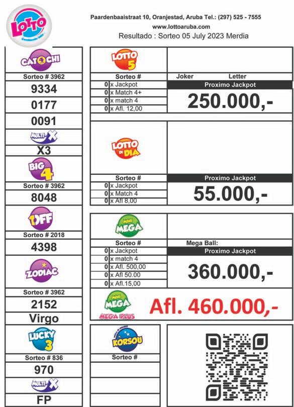 Premionan ta wordo anuncia dia 15 di Augustus 2023. Tira e coupon aki den buzon na oficina di Solo di Pueblo na Sta Cruz 110, solamente entre 2or di atardi cu 4or di atardi.