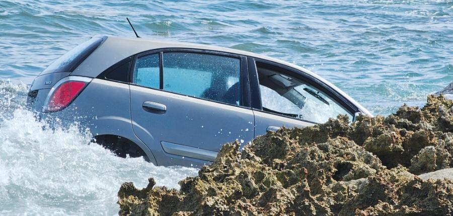 E chauffeur a logra sali di e auto, e la subi e barancanan y asina a subi tera. E tabata tin algun rasca na su curpa.