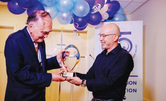 Giorgio Novello den nomber di Minister Plenipotenciario mr. Ady Thijsen y Gobierno di Aruba cu e celebracion di nan dia nacional. Pa e ocacion aki Joselin Croes a haci entrega di un regalo di Aruba na embahador Novello.