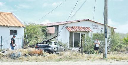 control ariba e auto. Ariba caminda por a mira unda e la brake, pa despues kita bay rechts, rancando un hala di mata pa termina contra un steun paal di Elmar kibrando e.