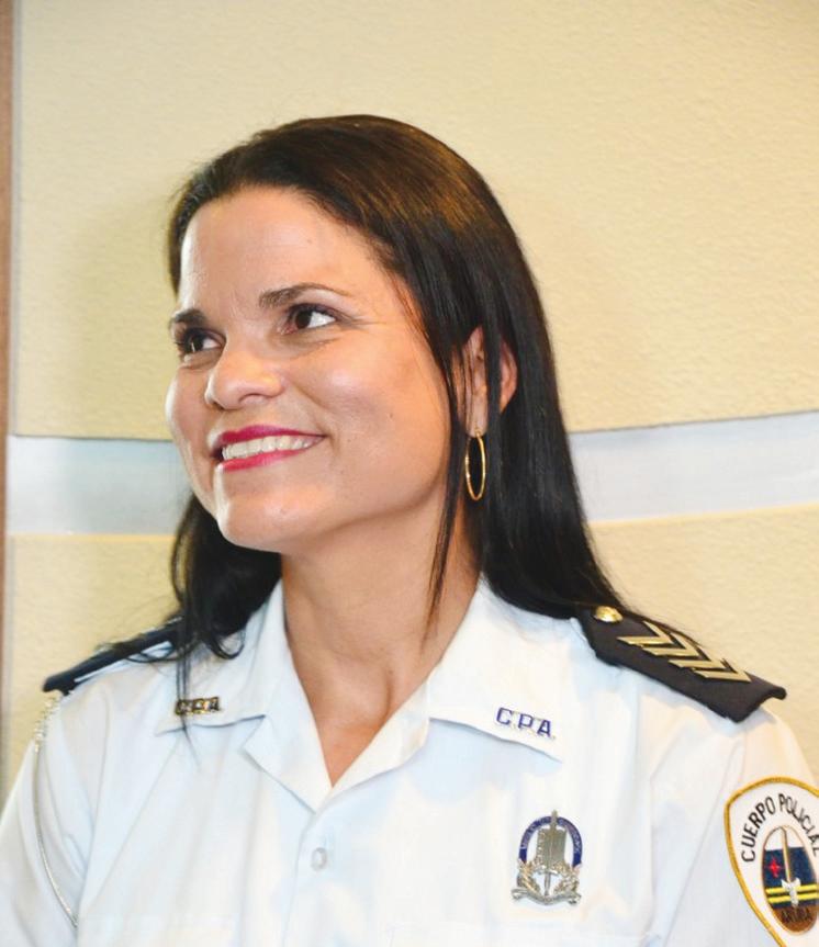 Pa prome biaha un ser femenino: Despues di aña 2014 cu Sr. Lito Lacle como Vocero Policial y sra. Liliana Rasmijn como suplente nan a sa di carga e departamento pa mas cu 10 aña. Bou Sr. Lito Lacle Aruba a mira un cambio y direccion nobo pa e departamento. Awor despues di 10aña Sr. Lito Lacle a sigui desaroya su mes pa un departamento nobo y asina aki a habri e oportunidad pa un Hefe nobo. Sra. Liliana Rasmijn no ta cara un desconoci. Ela gana e confiansa di biaha di comunidad y Aruba completo a brase como e vocero suplente. Sra. Liliana Rasmijn a logra haya e funcion nobo aki sin niungun problema ela demonstra su capacidad y ideanan inovativo pa hiba e departamento na un siguiente nivel tanto Nacional y Internacional.