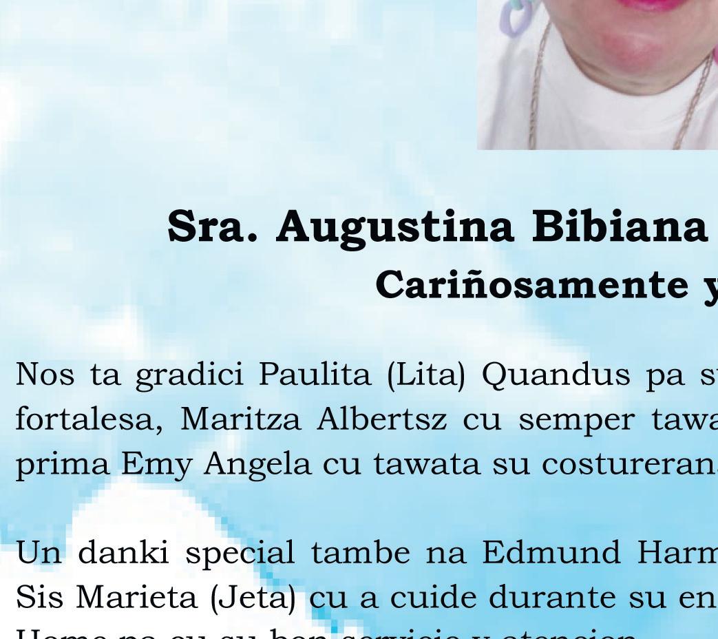 cara na laira . Seca bo lagrimanan pone un sonrisa riba bo cara y sigi focus pa bo metanan. Bo por mas cu bo mes ta kere. Na cada un hoben cu rato rato sa duda si nan por, keremi bo por . Abo hende muher bo por, nunca give up. Kere den bo mes!. Pero mas cu tur mi ta dedica e esfuerso y e guia aki na mi defunto tata Archi cu mi ta sinti e tey semper cu mi y mi sa e ta super orguyoso dimi cu awe mi a logra mi
