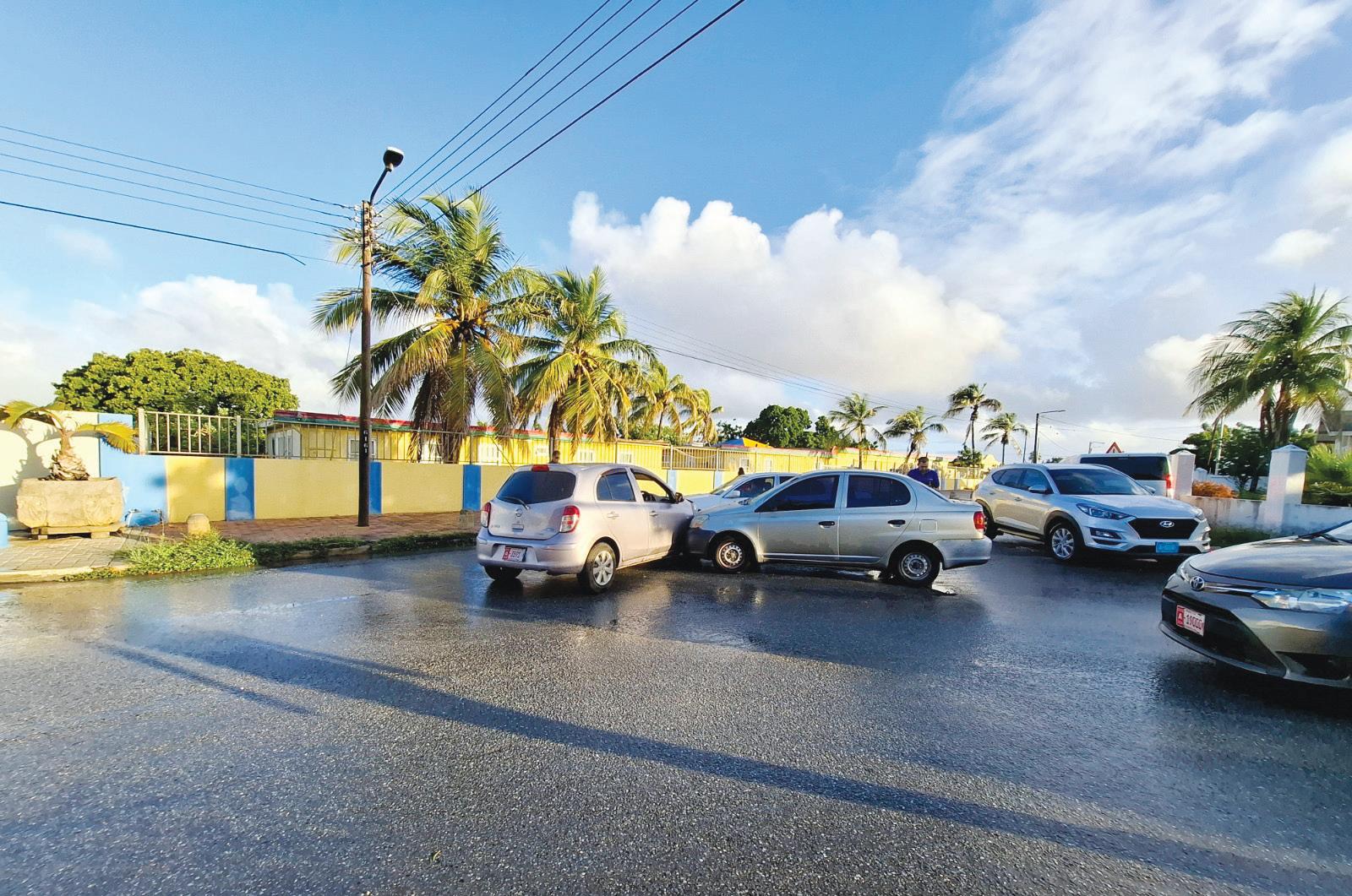 Diaranson mainta a drenta informe di un accidente dilanti rijbewijs kantoor na Santa Cruz unda trafico a pega, mesora a dirigi patruyanan na e sitio. Na yegada di e patruya a bin compronde cu aki ta trata di un accidente unda un dama chauffeur a bay subi e caminda pero no a mira e auto cu tabata bini for di nort y a bay dal den esaki. Afortunadamente aunke tin hopi daño ningun hende a resulta herida.