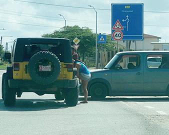 di pabao no a para pa un Jeep bayendo zuid den Caya Francisco Figaroa y a bay dal