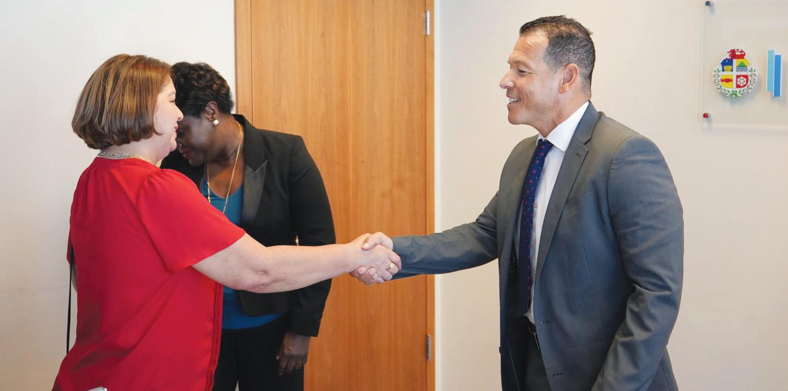 Prome Minister Evelyn Wever-Croes hunto cu Minister Rocco Tjon a reuni cu Minister di Defensie di Hulanda, señor Ruben Brekelmans cu ta di bishita na Aruba pa un dia pa un reunion cu Gobernador, Gobierno y Mariniers Kazerne riba e situacionnan cu Marina Hulandes ta encarga cu ne.
