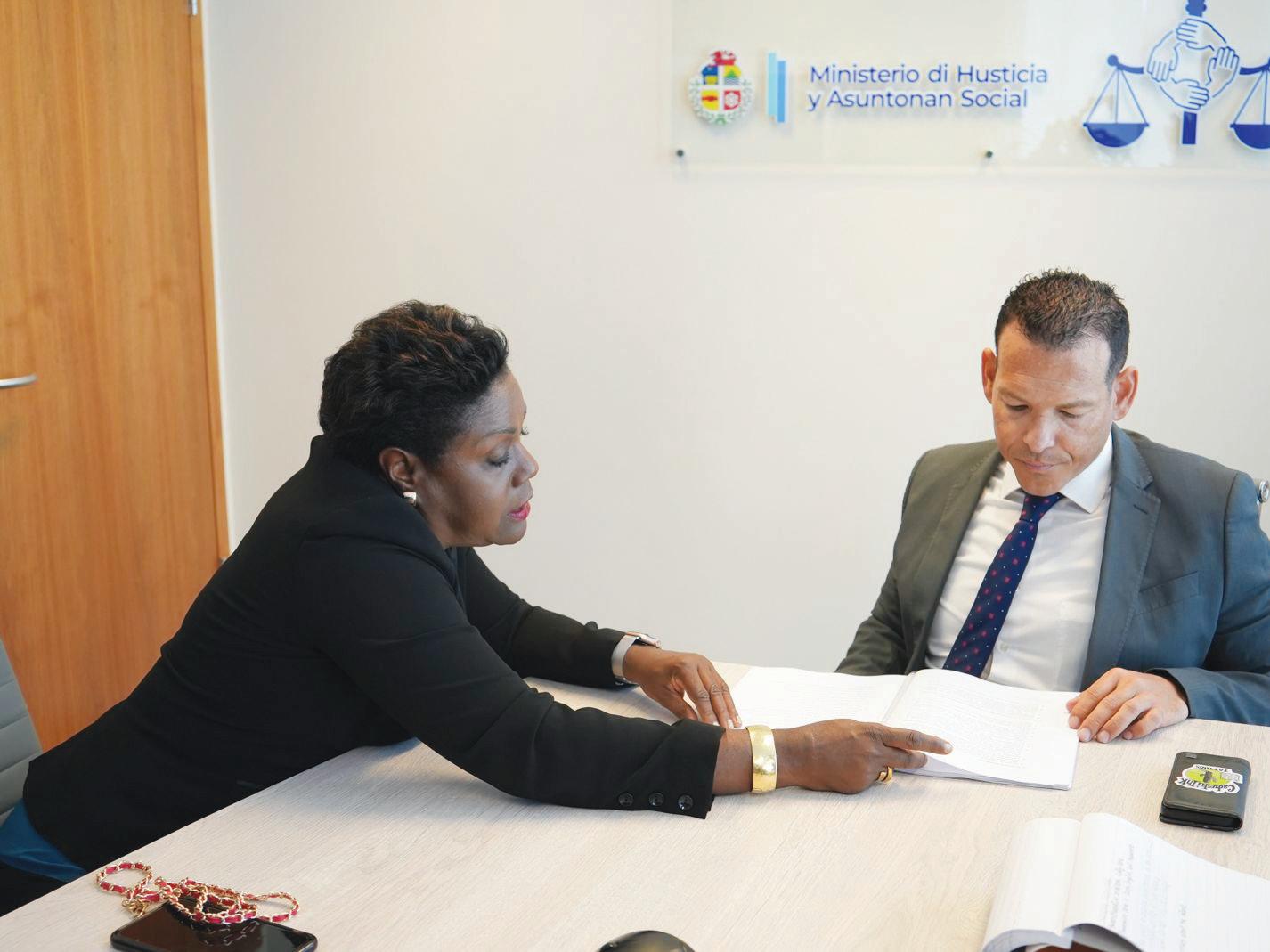 Dialuna, Minister di Husticia y Asuntonan Social sr. Rocco Tjon, a reuni cu e ekipo multidisciplinario di expertonan for di Instituto Pedagogico Arubano y Vrije Universiteit Amsterdam, kende a percura pa encuesta hobennan a traves di un lista di pregunta. E preguntanan aki ta enfoka riba e contexto escolar, esun di bario, esun di cas y por ultimo nan bienestar fisico y mental.