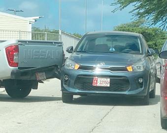 Diamars atardi a drenta informe di un accidente cu hende herida banda di e edificio di impuesto unda ta busca plachi number, mesora a dirigi tanto polis como ambulans na e sitio. Na yegada di e patruya a bin compronde cu e dama chauffeur di e Kia Picanto a reverse pero no a mira cu un auto tabata bini y esaki a dal e bir’e 90 grado. E impacto fuerte aki a laga e dama herida cu un “whiplash”. Na yegada di e ambulans nan a atende e dama y a transporte pa hospital.