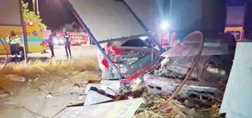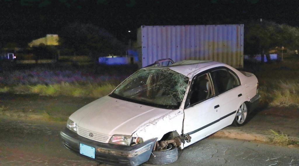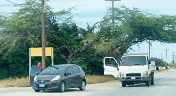 na Piedra Plat y tabata bayendo su cas, na altura di e rotonde Tanki Leendert a pasa hopi duro over di e rotonde y a bay pega den e cura di e welding shop pabao di caminda.
