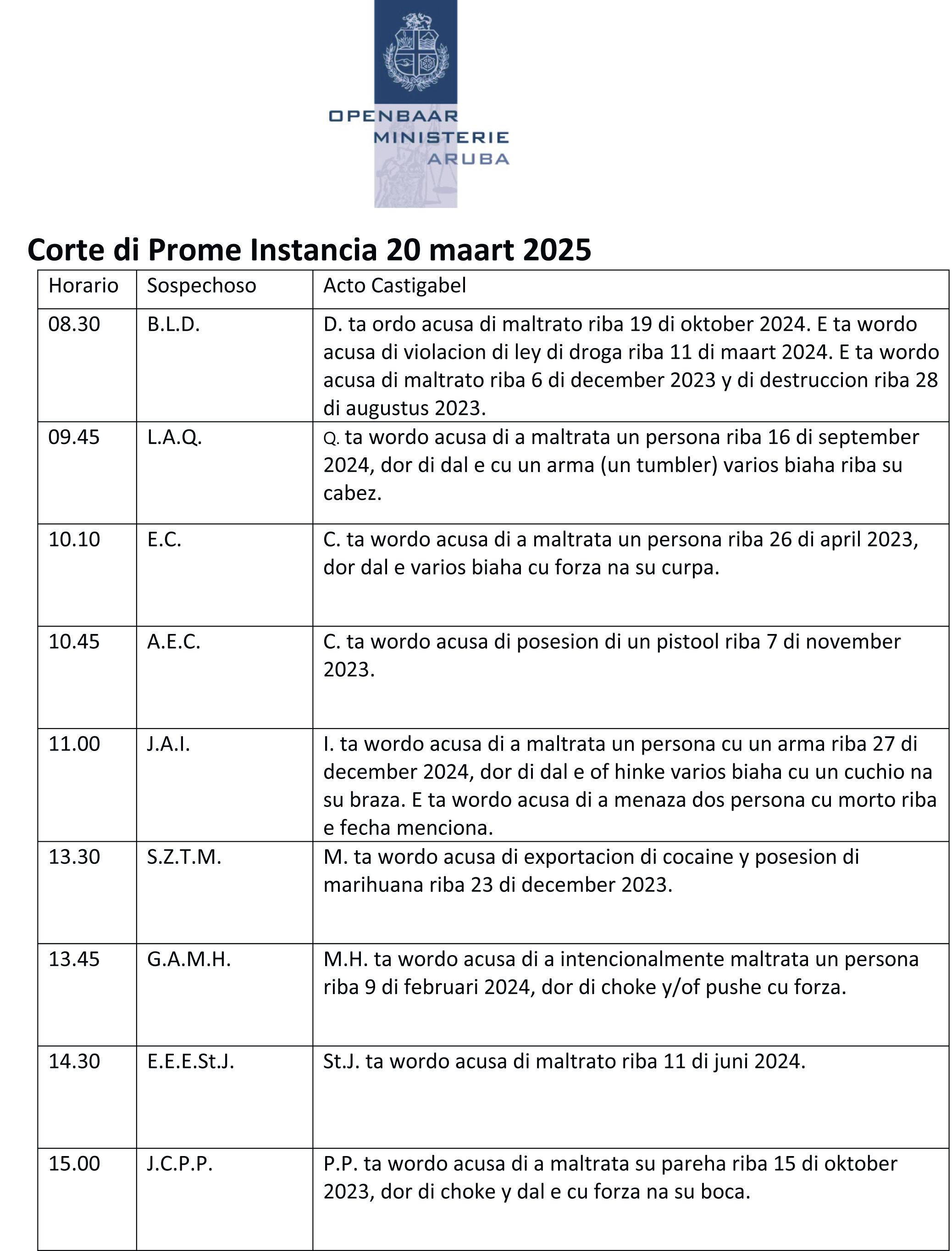 training mañan, 20 di maart.