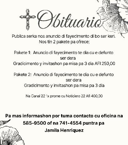 Cu dolor na nos curason pero conforme cu boluntad di Dios, nos ta participa fayecimento di nos ser stima: