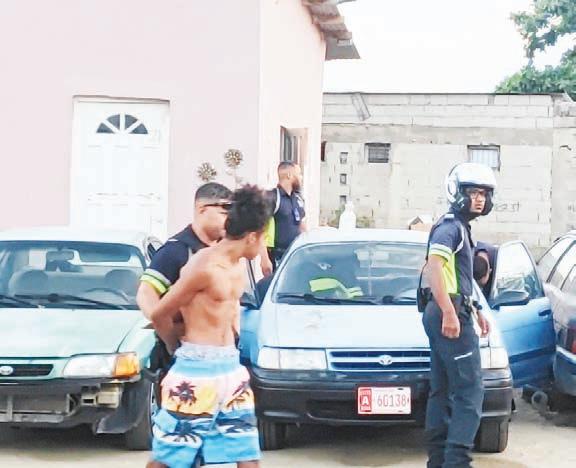 varios patruya den e area. Na yegaa di e patruya a bin compronde cu algun hoben a yega na un cas na Bushiri Residences y a menasa un persona ademas a saca e arma y a "crank" esaki, pero na e momentonan ey nan a bay caba den un Toyota Tercel patruyanan a cuminsa busca rond mientras tabata papiando cu e victima a logPolisnan a bay na un adres na Madiki unda eynan a logra haya un di e sospechosonan y nan a detene.