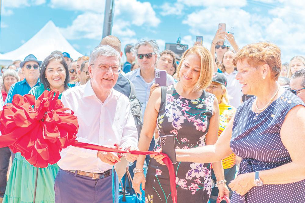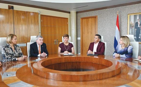 Sr. Thomas Bach, Presidente di International Olympic Committee (IOC) hunto cu Presidente di PanAm Sport Neven Illic, James Mac Leod Director of Olympic Solidarity Funds, Joanna Zipser- Graves Señor Manager NOC management programmes of Olympic Solidarity, demas miembronan internacional compaña pa Wanda Broeksma Presidente di COA, Nicole Hoevertsz Vice Presidente