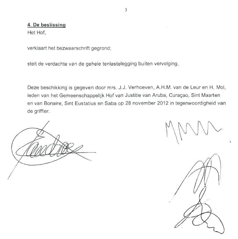 Pa no laga e disparatennan cu nan ta papia haya bida, nos ta pone prueba ora cu 3 huez a dicidi cu Endy Croes no tabata tin nada di hasi den e dicho caso, y como tal a keda estableci cu NUNCA a horta ni 1 florin.