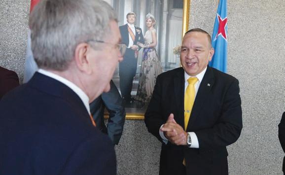 urante e reunion cu Ministerraad, Prome Minister di Aruba Evelyn Wever-Croes a introduci su ministernan y a hiba den liñanan grandi e posicion di Aruba despues di pandemia. Thomas Bach despues a duna un introduccion di e balornan di deporte manera excelencia, amistad y respet, pero