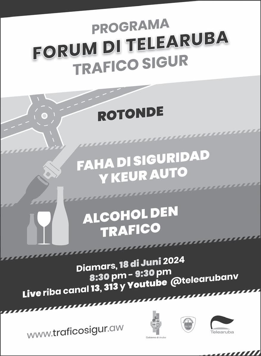 Comision Trafico Sigur den colaboracion cu TeleAruba lo presenta su di dos programa di Forum Diamars dia 18 di Juni 2024 pa sigui promove siguridad den trafico.